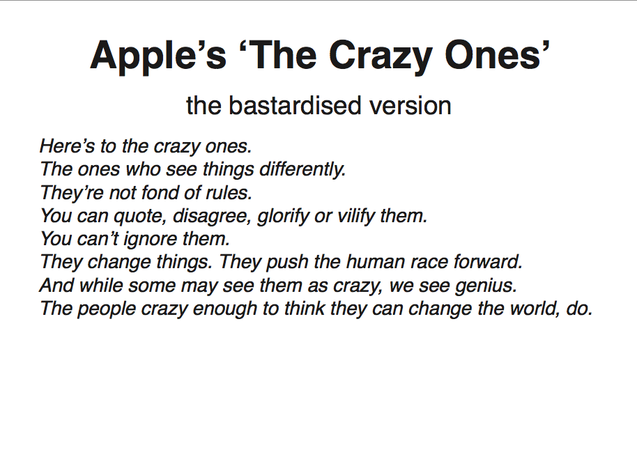 A friend, and one of Australia’s leading advertising recruiters, Esther Clerehan, often answers questions from aspiring art directors and copywriters on her blog. Recently, she was asked, ‘What is the difference between an idea and an execution?’