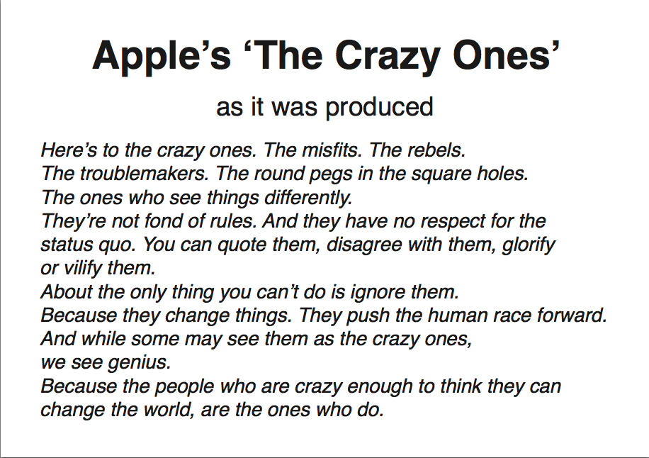But a big step forward in your understanding of advertising comes when you learn to divorce the execution from the idea. You can look behind the shiny surface and see the thinking to how the ad was actually constructed.